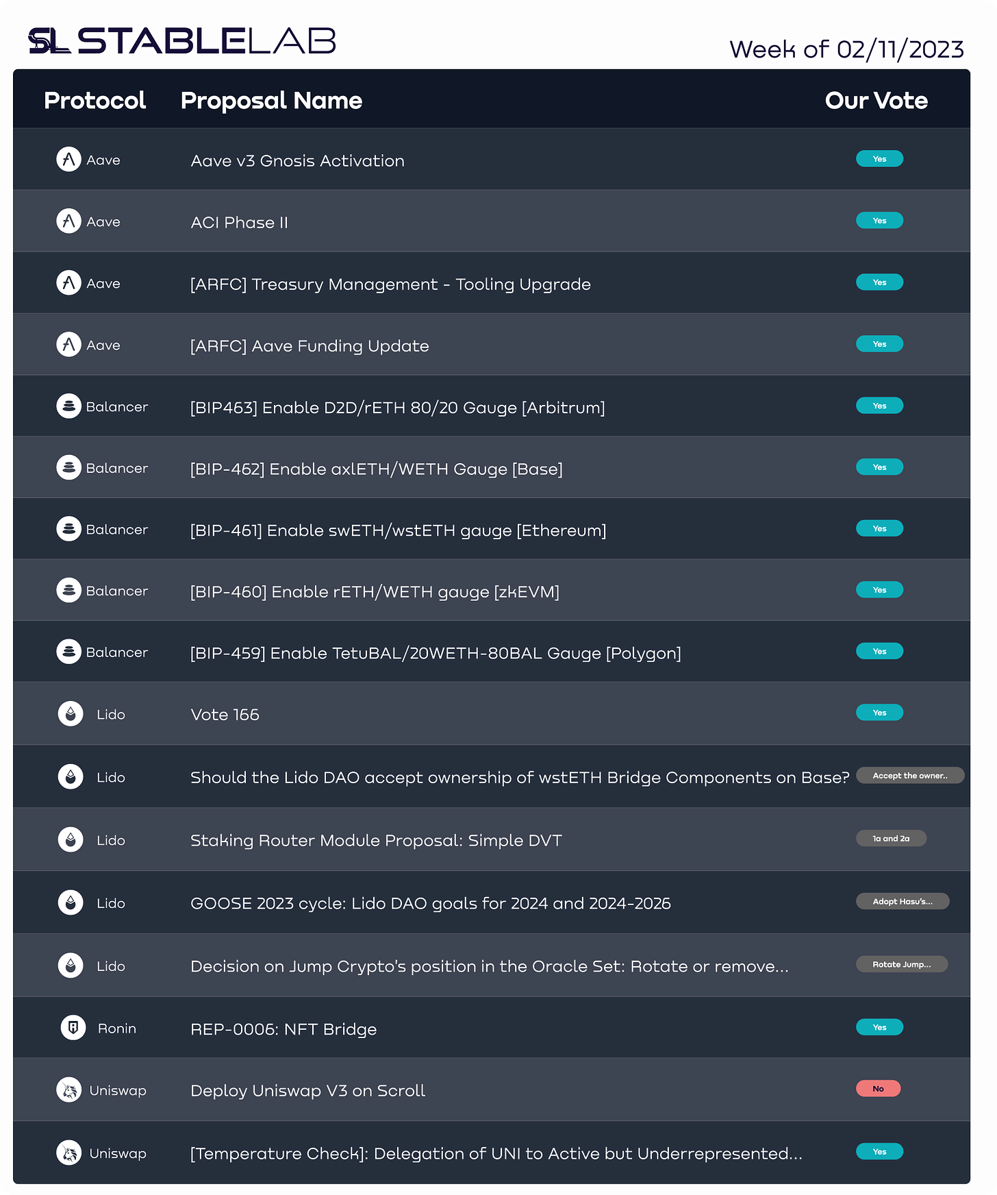 Frens, welcome back to the Governance Lab, your weekly source for all things StableLab, DeFi, and DAO Governance. This week, we released a podcast featuring Phoenix Labs, core contributors at Spark Protocol. Maker is doing this thing where it incubates ecosystem actors, also known as service providers. Personally, I’m excited to see how this experiment plays out in helping bootstrap teams and projects that not only benefit Maker, as Rune has clearly articulated, but also in creating this ripple effect throughout the industry. In addition to Phoenix Labs, we have Chronicle, BA Labs, and dozens of other highly talented teams involved. We’ll just have to wait and see. Enjoy!